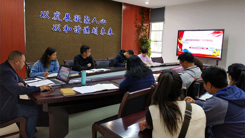 邱荣富书记首先对党支部开展党史学习教育作了布置。他说,党史学习教育贯穿2021年全年,各党支部要把握庆祝中国共产党成立100周年大会、党的十九届六中全会、党史学习教育总结大会等时间节点,认真组织开展好党支部的党史学习教育,将党史学习教育作为“三会一课”、主题党日的重要内容,坚持每月开展1次专题学习交流,把开展党史学习教育作为一项重要的政治任务抓好抓实。