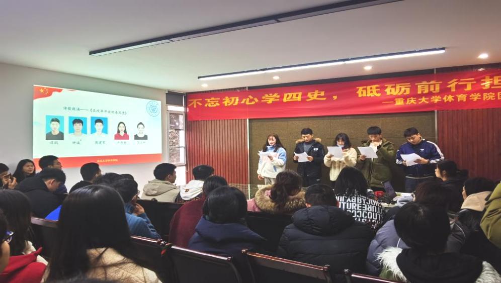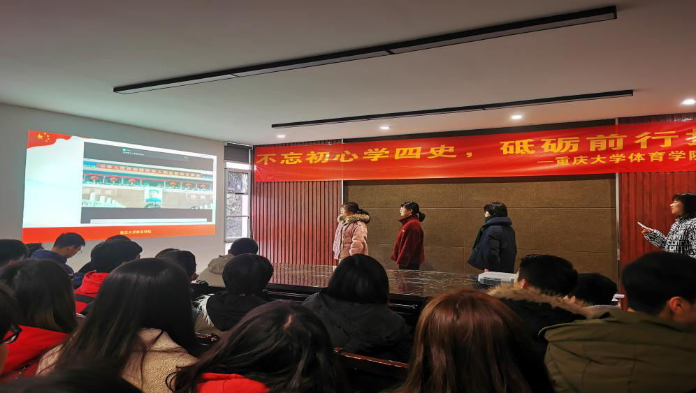 研究生党支部组织的 “不忘初心学四史,砥砺前行担使命”特色党团活动在210会议室举行。本次活动分为诗歌朗诵、“声”临其境、“知”史“明”史知识问答以及大合唱4个环节,色情直播全体研究生参加。