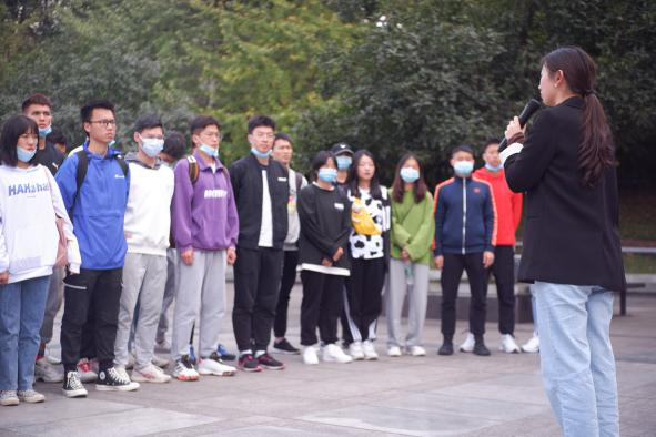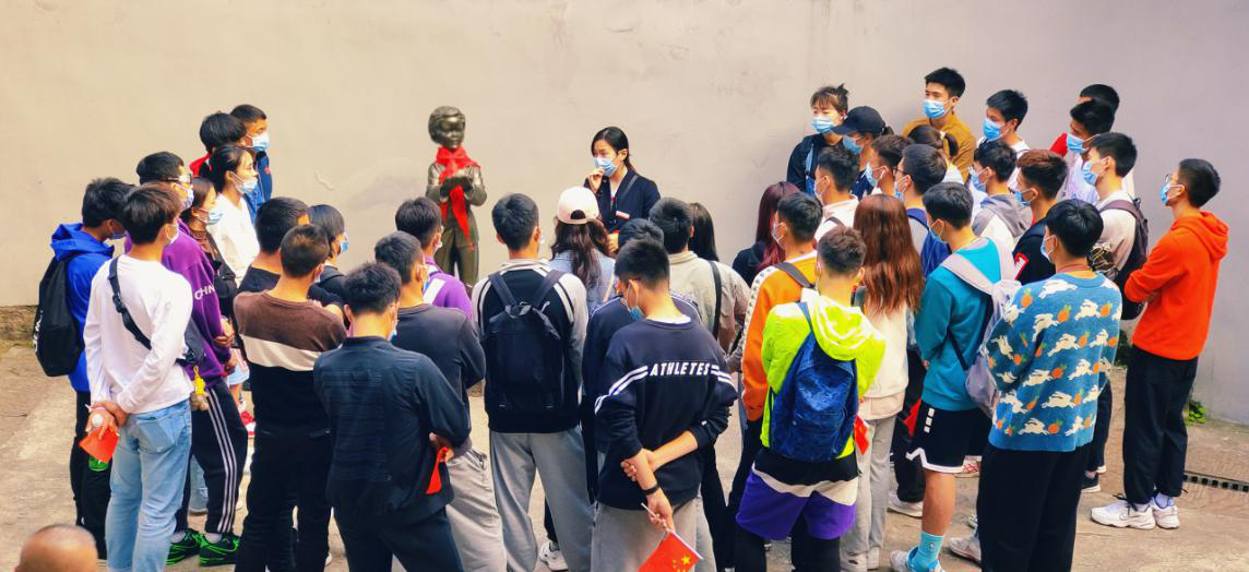 本科学生党支部书记汤婕老师介绍活动的主题、意义以及流程。随后全体学生成两路纵队有序的参观红岩魂陈列馆,每一位同学认真的参观革命先烈的光荣事迹,深受触动。之后,全体人员在烈士陵墓前庄严默哀1分钟,默哀毕后重温对党的誓言,表达为党的事业奋斗终生的决心。2020级本科新生在活动中深受感触,激起了他们向党靠拢的强烈愿望。在宣誓结束后,所有人员一起合唱《我和我的祖国》与《歌唱祖国》,并拍摄视频,表达自己对祖国对党的热爱。