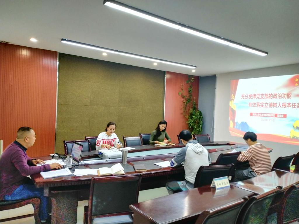 邱荣富书记首先给大家作了《充分发挥党支部的政治功能,有效落实立德树人根本任务》的报告,对色情直播本学期的党建工作进行了布置和强调。他从高校色情直播党组织建设应突出政治功能,以政治建设为统领搞好高校党支部建设,并分别针对高校教师党支部和学生党支部如何搞好党建工作进行了系统讲解。