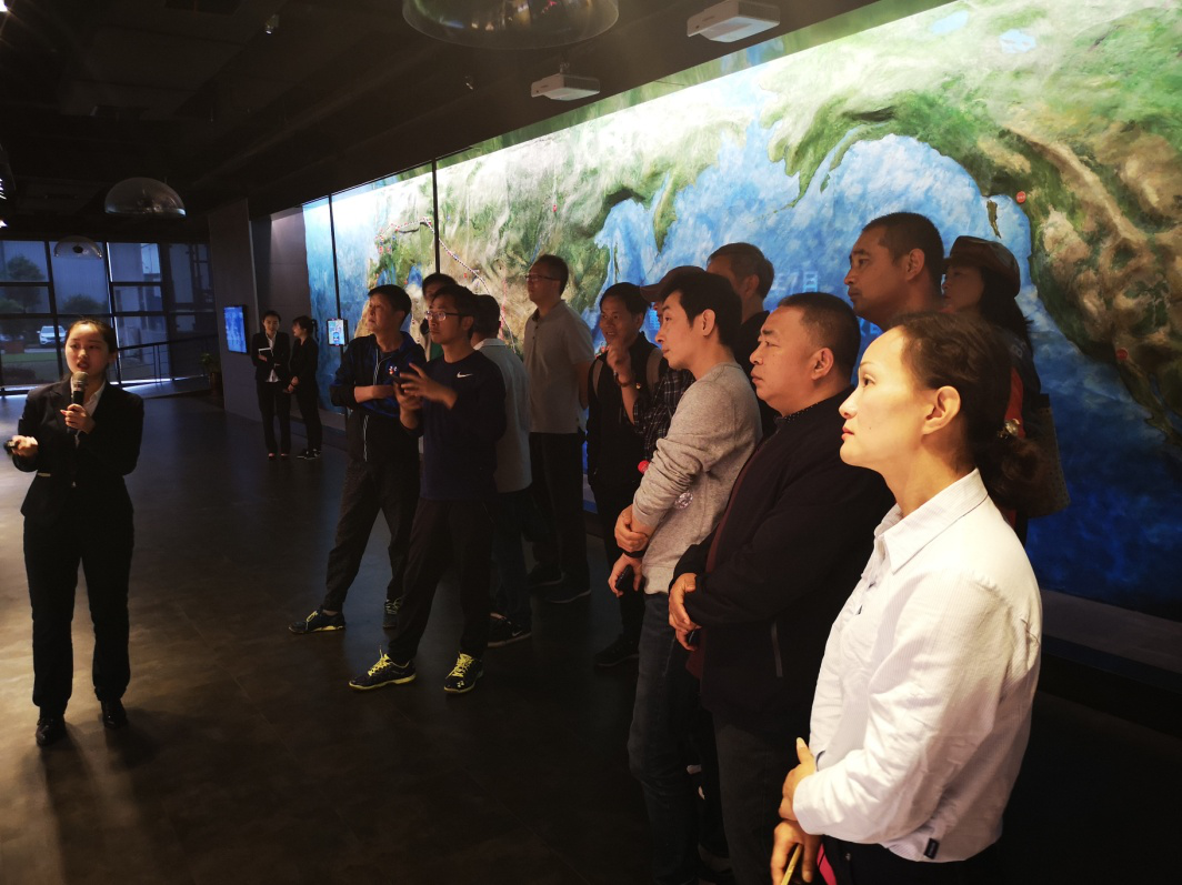 大家首先来到“丝绸之路经济带渝新欧国际铁路大通道起点”雕塑前合影。在渝新欧零地标广场,重庆国际物流枢纽园区的解说员向大家简单介绍了重庆国际物流枢纽园区情况、枢纽体系、开放平台、通道建设、口岸功能,让大家对园区有了初步的了解。