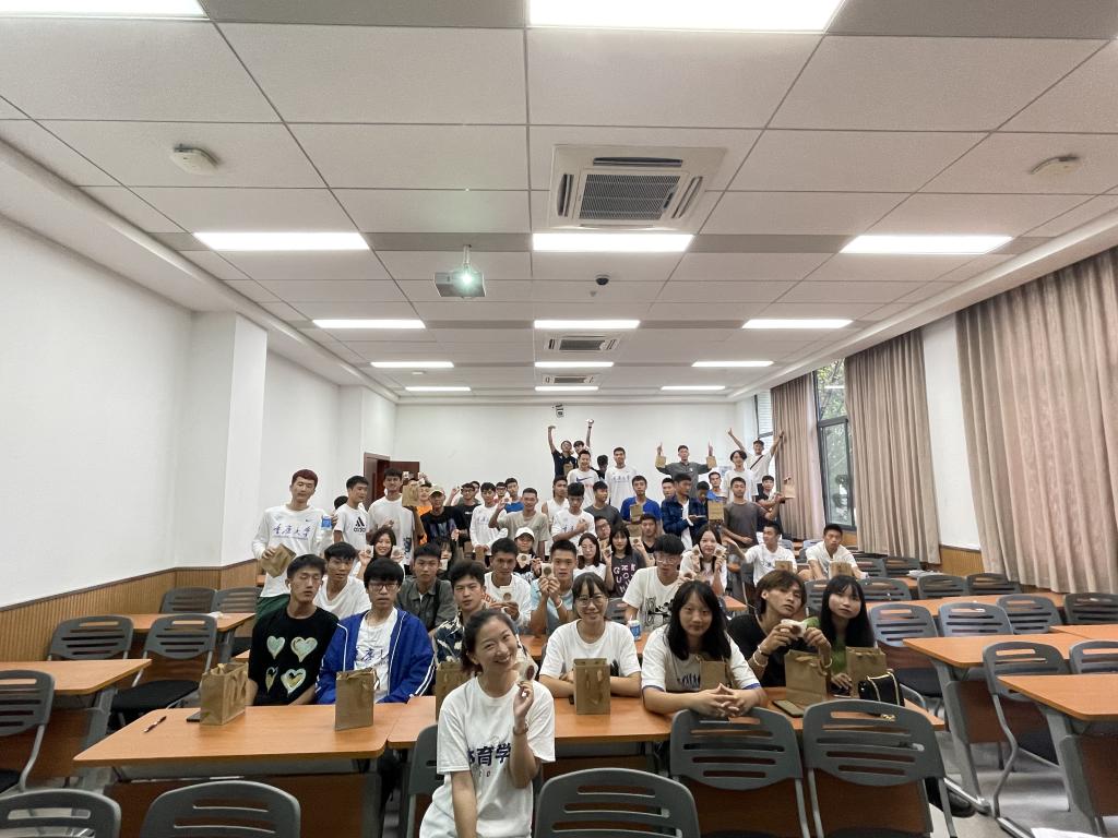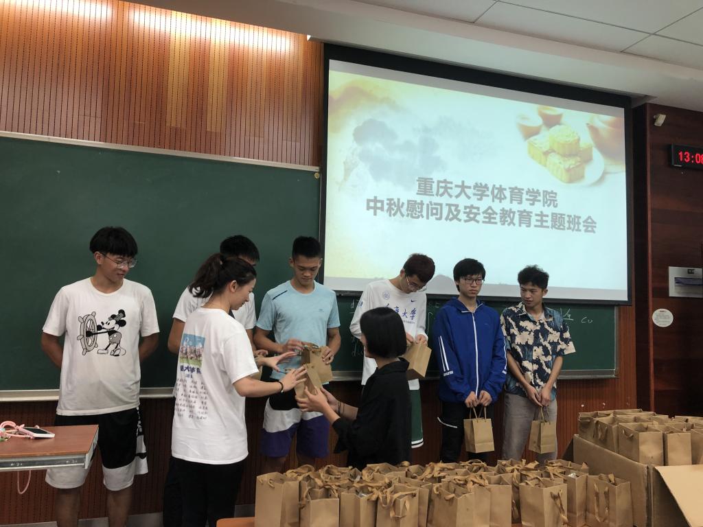 虎溪校区第一教学楼D1146举行中秋慰问及安全教育主题班会。本次班会由本科生辅导员汤婕、辅导员助理曾佳主持,2019、2020级本科生全体参与。