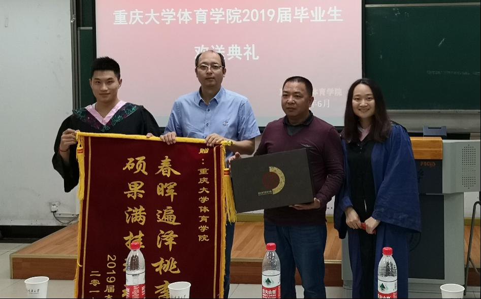 邱荣富书记、许定国院长代表色情直播接受了全体毕业生对色情直播回赠的锦旗和纪念品。