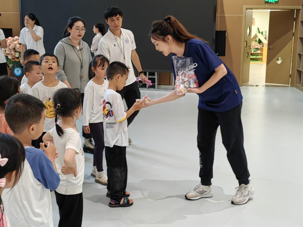 活动开始,汤婕给幼儿园的孩子们,介绍了本次活动意义和背景,随着音乐的开始,汤婕带领着孩子们在音乐的律动下,完成了活动前的热身运动,激发了孩子们的运动兴趣。
