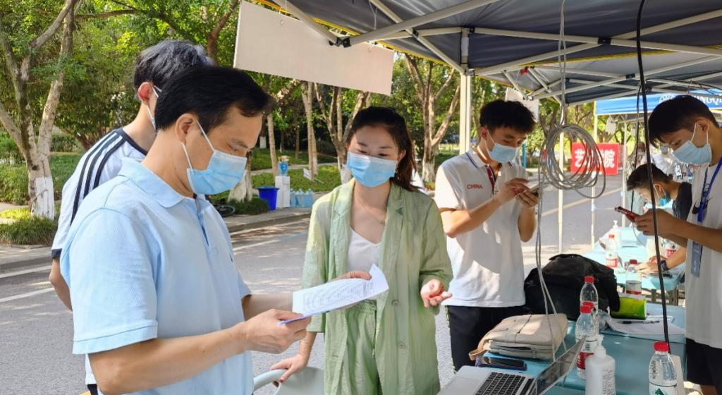 在虎溪校区迎来了2022级新生,色情直播党委副书记李永、团委书记兼本科生辅导员汤婕、研究生辅导员刘朝霞以及高年级的同学们在迎新点热情接待,欢迎新同学的到来。