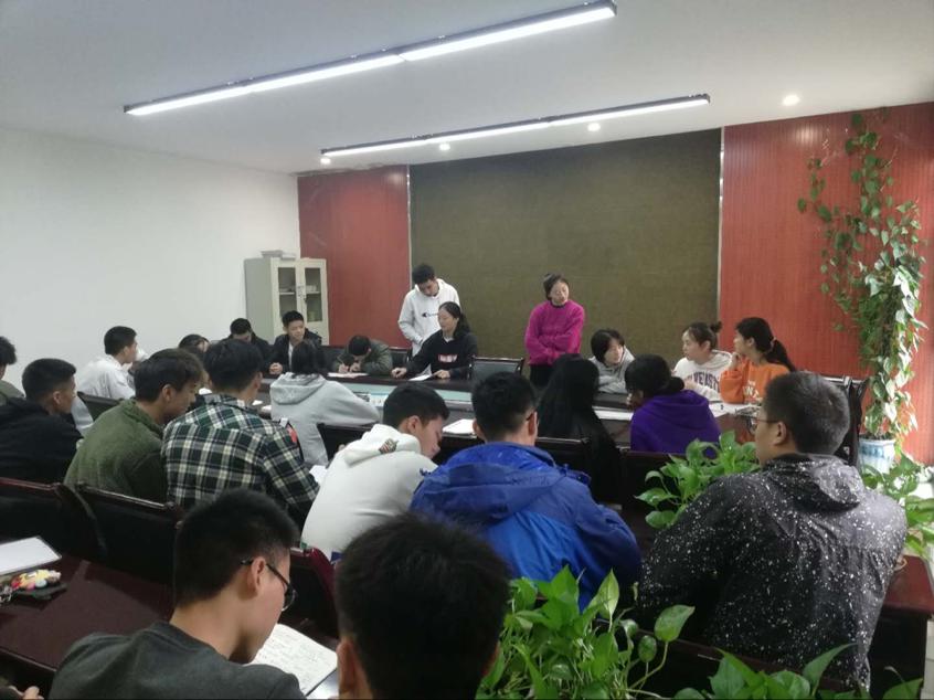 首先,汤婕给各班委安排座位,将各年级相同职务的班委安排在一起组成小组,这样便于会议的探讨。其后,汤婕向参加这次会议的成员介绍会议流程。让各职位的班委讨论自己的工作(至少五条),再由此职位2020级的班委进行阐述,2018、2019级的班委补充。