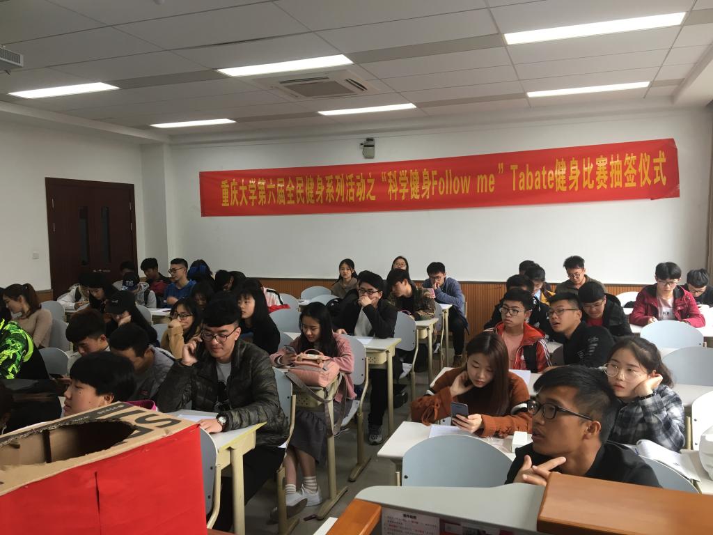 虎溪校区第一教学楼D1312举行了第六届全民健身系列活动“科学健身Follow me”Tabate健身比赛抽签仪式。参加此次会议的有色情直播
