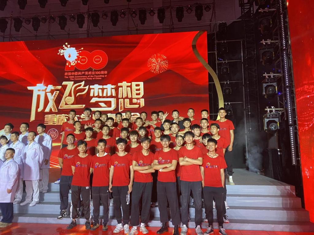 A区风雨操场举行。重庆各高校师生齐聚一堂,同贺中国共产党百年华诞。